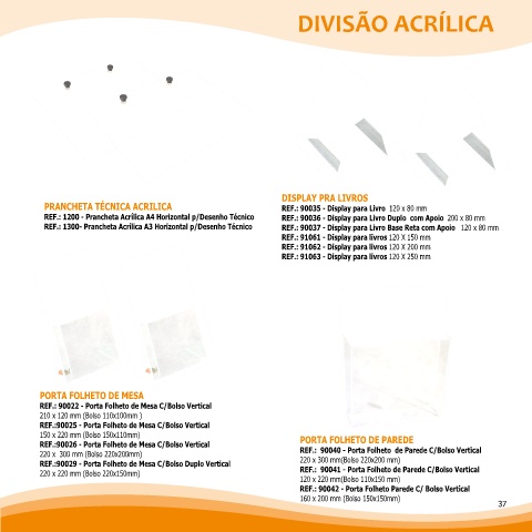 REF.: 1200 - Prancheta Acrílica A4 Horizontal p/Desenho Técnico REF.: 90036 - Display para Livro Duplo com Apoio 200 x 80 mm